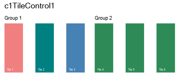 The layout of the Tiles in the TileControl is fully customizable through the layout properties. The tiles are arranged in each group horizontally by default, but can be changed to vertically through the Orientation property. Use the horizontal layout mode to make the Tile control appear like the Windows 8 UI and use the vertical layout to make the Tile control appear like an advanced listbox.