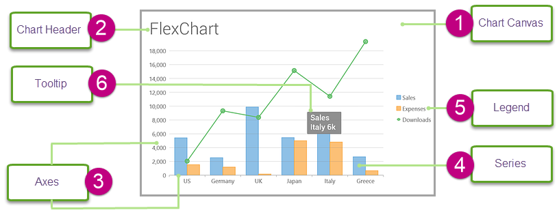 FlexChart is composed of several elements as shown below:
