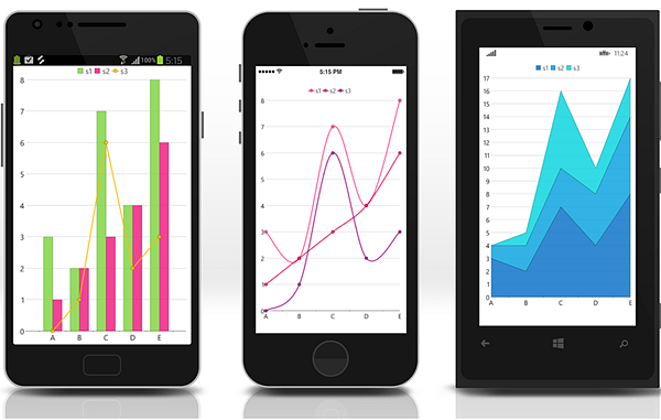 The FlexChart control allows you to represent data visually in mobile applications. Depending on the type of data you need to display, you can represent your data as bars, columns, bubbles, candlesticks, lines, scattered points or even display them in multiple chart types.