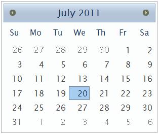 | Task-Based Help > Apply Built-in Date Format Patterns to Calendar Title > Displaying the Full Calendar Month Name and Year |