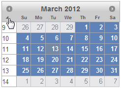 The MonthSelectorImage appears in the upper left corner of the month view. The month selector selects all of the days of the month when the mouse cursor is placed over it.