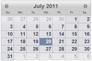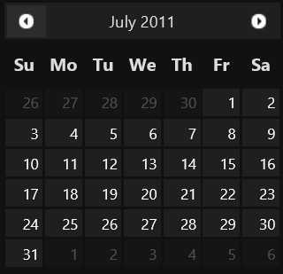 C1Calendar provides ten built-in themes for the control—Arctic, Aristo, Cobalt, Lucid, Metro, Metro-Dark, Midnight, Rocket, Stafford and Sterling—that can be easily applied to the control by setting the Theme property.