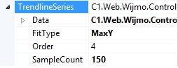 // Create new series var seriesTrendline = new CandlestickChartSeries(); seriesTrendline.IsTrendline = true; seriesTrendline.Label = "Trendline"; seriesTrendline.TrendlineSeries.FitType = TrendlineFitType.Polynom; seriesTrendline.TrendlineSeries.Order = 4; seriesTrendline.TrendlineSeries.SampleCount = 100; // Add series to the chart this.C1CandlestickChart1.SeriesList.Add(seriesTrendline); // Add X Dataforeach (var valueX in this.C1CandlestickChart1.SeriesList[0].Data.X.Values)