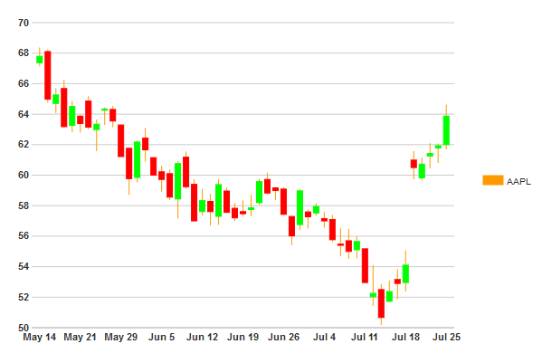 The following image shows the C1CandlestickChart bound to remote data: