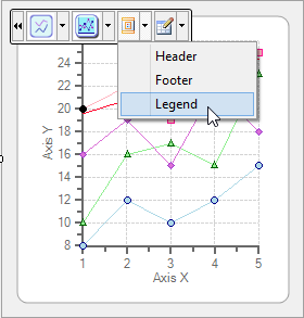 - Select the Layout drop-down arrow from the C1Chart floating toolbar drop-down menu and choose the Legend item.