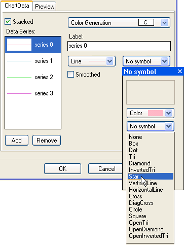 - Select the symbol shape, for example star, to add it to the selected data series.