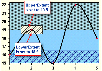 By using the UpperExtent and LowerExtent properties, each Alarm Zone band can be adjusted to specific values. The graphic below displays an Alarm Zone band adjusted to a low y – value of 18.5 and a high y - value of 19.5 by using the LowerExtent and UpperExtent properties.