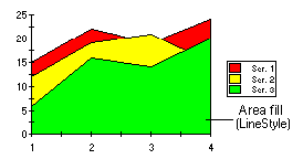An Area chart draws each series as connected points of data, filled below the points. Each series is drawn on top of the preceding series. The series can be drawn independently or stacked. Using the LineStyle, the fill properties of each series can be customized. For more information, see Line and Symbol Styles for the Series.