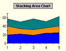 Use the ChartGroup object's Stacked property to create a stacking Area chart. Stacking charts represent the data by stacking the values for each series on top of the values from the previous series.
