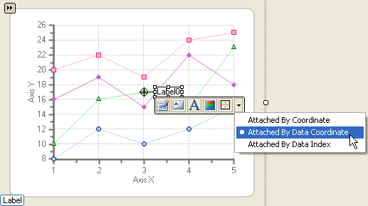 - Select an existing Chart label and select the Attached By Data Coordinate item from its drop-down menu.