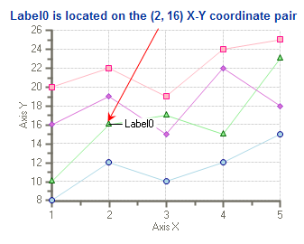 - If you would like the label to represent a different coordinate pair then simply change the X and Y coordinates in the Edit labels editor. For example, let's say we would like the label on the (2, 16) coordinate pair. In the Edit labels editor we change the X value to 2 and the Y value to 16. The label appears on the (2, 16) X-Y coordinate pair. The image below shows the new position of the label.