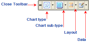 The primary C1Chart floating toolbar for the C1Chart control includes the following command buttons: a Close, Chart type, Chart sub-type, Layout, and a Data button.