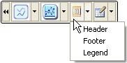 The Layout command button has a drop-down menu which contains the Header, Footer, and Legend elements. Selecting one of the elements exposes either an editable Header, Footer, or Legend element directly on the Chart Area.