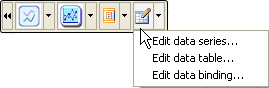 The Data button has a drop-down menu which includes three options for the user to select from: Edit data series, Edit data table, and Edit data binding. The Edit data series item exposes the Chart Properties designer for the data series. The Edit data table item exposes the Chart Properties designer for the data table. The Edit data binding item exposes the Chart Properties designer for the data binding. If you would like to edit another element other than the data series, data table, and data binding you can click on the