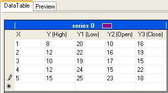 Note: X represents the position on the x-axis, Y represents the Hi value, Y1 represents the low value, Y2 represents the open value, and Y3 represents the closing value. |