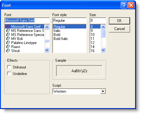 Use the standard .NET Font property editor to set the font, style, and size attributes. Font properties are located under the Style nodes of the Visual Studio Properties window.