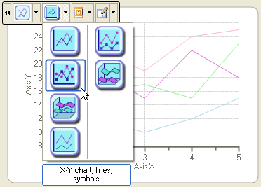 The X-Y chart, lines, symbols chart sub-type appears on the chart control.