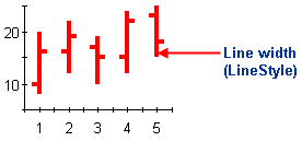 HiLoOpenClose charts are similar to HiLo charts except that they combine four independent values to supply high, low, open and close data for a point in a series. In addition to showing the high and low value of a stock, the Y2 and Y3 array elements represent the stock's opening and closing price, respectively.