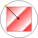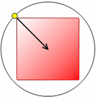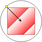 You can change the angle of the visual rendering by setting its Angle property to a different degree. The default value for the Angle is 45 degrees. The value of the Angle property ranges from -180 to 180 degrees. As you change the value of the Angle the arrow points to the color and it move around the square in counter-clockwise direction.