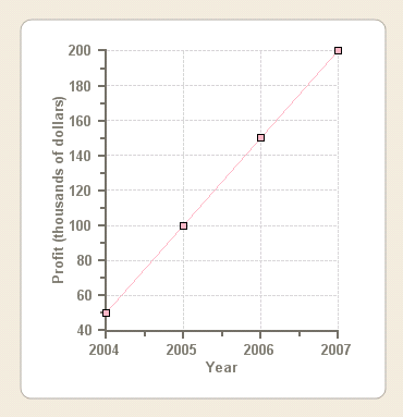 In this example we will create a Line chart with symbols. There will be only one line so we will use one data series. The line will display the company's profit growth over time. The horizontal axis, in this example, Axis X, represents years and the vertical axis, in this example, AxisY, represents profit in thousands of dollars.