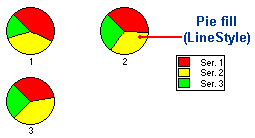 A Pie chart draws each series as a slice in a pie. The number of pies is the number of points in the data. Each pie displays the nth data point in each series. Using the LineStyle, the fill properties of each series can be customized. For more information, see Line and Symbol Styles for the Series.