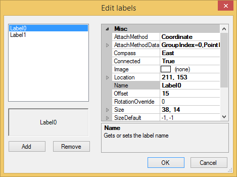 The Add/Edit labels command item exposes the Edit labels editor. In the Edit labels editor you can add or edit existing labels.