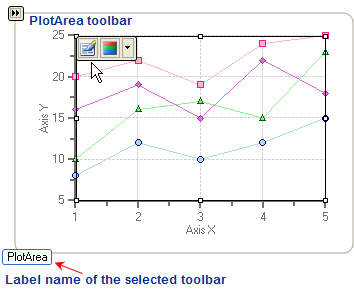 The figure below shows how the PlotArea toolbar appears when the user selects the PlotArea on the C1Chart control. When a user selects a toolbar, a label name is provided for the user's convenience.