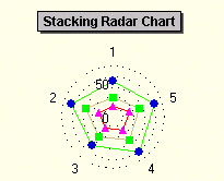 Use the ChartGroup object's Stacked property to create a stacking Radar chart. Stacking charts represent the data by stacking the values for each series on top of the values from the previous series.