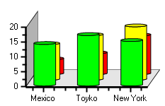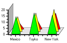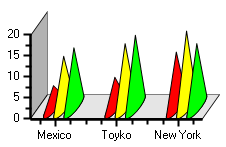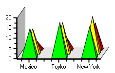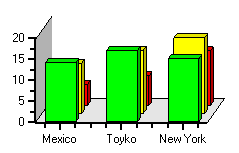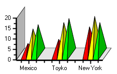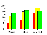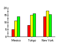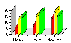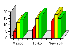 A Bar chart draws each series as a bar in a cluster. You can display each series on a single row with 2D Bar charts, or display each series in multiple rows with 3D Bar charts. The 3D Bar chart provides an interesting alternative view; you can view the front side of the 3D Bar or Column charts rather than the typical side view. The sizing and spacing of the clusters for Bar and Stacking Bar charts can be customized. Additionally, you can change the Bar chart's appearance to any of the following shapes: cylinder, cone, or pyramid.