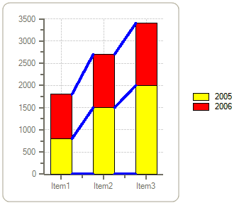 Set the BarLines property to True when you want to show the lines between the data series rectangles from point to point in stacked 2D bar and column charts. When you set the BarLines property to True you can use the BarLineColor and BarLineThickness properties to specify the line color and line thickness for the bar lines as depicted in the following figure: