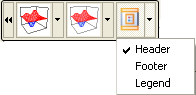 The Layout command button has a drop-down menu which contains the Header, Footer, and Legend elements. Selecting one of the elements exposes either an editable Header, Footer, or Legend element directly on the Chart Area.