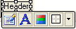 Selecting either the Header or Footer element exposes an editable textbox along with a toolbar that provides formatting commands. If the toolbar does not appear instantly then you can click the left mouse button and slide it over the textbox to expose the toolbar. The image below illustrates a Header text box automatically added to the Chart Area on the C1Chart3D control.