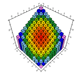 z(i,j) = 200 - ((i - 10) * (i - 10) + (j - 10) * (j - 10))