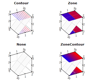 To determine the appearance of the floor, set the FloorAppearance property. In the following example, the XAML sets the FloorAppearance of a SurfaceZone chart to Contour.