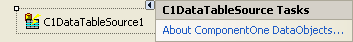 You can access the C1DataTableSource Tasks menu by clicking the smart tag in the upper-right corner of the C1DataTableSource component.