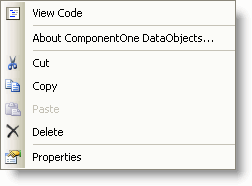 You can access the C1DataTableSource context menu by right-clicking the C1DataTableSource component.