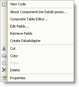 You can access the C1ExpressTable context menu by right-clicking the C1ExpressTable component.