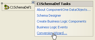 To invoke the wizard, select Conversion Wizard in the C1SchemaDef Tasks menu of a C1SchemaDef component.