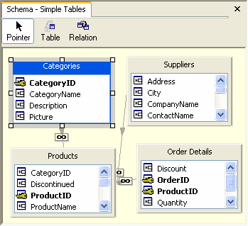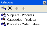 | Information | The Information window provides information on the item currently selected within the Schema Designer. For example, if the Products – Order Details relation is selected, the Information window shows the relation and states the relation type, SimpleRelation.![]() |