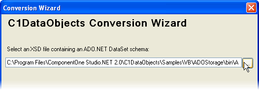 - If importing from an ADO.NET schema file, click the ellipsis button under Select an XSD file containing an ADO.NET DataSet schema to specify the schema file.