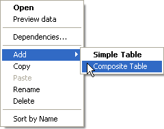 - In the Schema Designer, right-click the Tables window and select Add | Composite Table from the context menu.