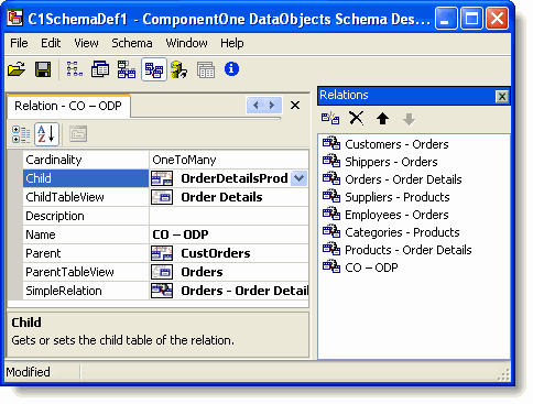 - Set the relation's Name property to Order Details – Products in the property grid below the diagram.