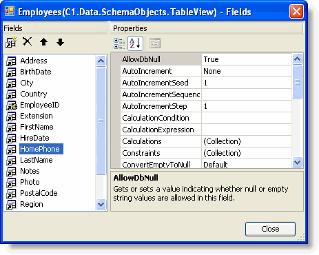- To observe how DataObjects for .NET maintains underlying structure on data modifications, try changing the EmployeeID field in the first row of C1TrueDBGrid1, the Customers grid, from 6 to 1. The FirstName and LastName fields, dependent on EmployeeID, change correspondingly. Now go to DataGridView1, the Employees grid, and change the LastName of the employee with EmployeeID=1. All rows of the Customers grid that have EmployeeID = 1 reflect this change, showing the new LastName value. Alternatively, you can change the LastName or FirstName field in the Customers grid and see the change reflected in the Employees grid. Whatever the changes, DataObjects for .NET recognizes them so you can rely on proper structure being maintained for your data at all times.