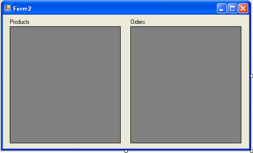 - Set the the Text properties for Label1 and Label2 to Products and Orders, respectively.