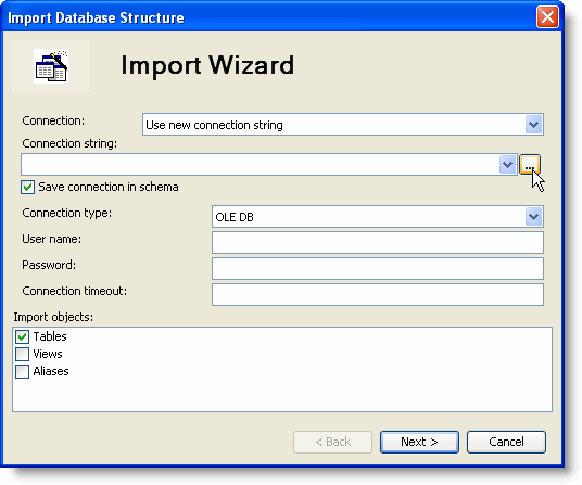 Note: Select Schema | Import database structure in the Schema Designer to open the Import Wizard if it does not automatically appear. |