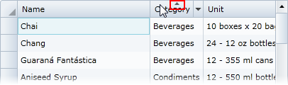 Sorting grid columns at run time is simple in DataGrid for WPF. To sort columns click once on the header of the column that you wish to sort.