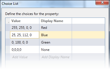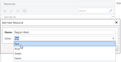 You can apply background colors to items from a data source when using the Grouping feature. For example, suppose you want to color code sales regions in your resources list. Simply use the Choice List to determine available colors.