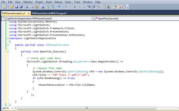 | Welcome to LightSwitch Desktop Edition > PdfViewer for LightSwitch Overview > PdfViewer for LightSwitch Quick Start > Adding a PDF from a File System |
