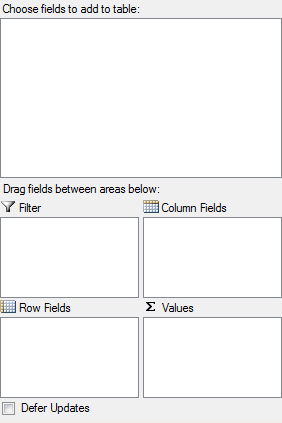 | Row Fields | The items in the field specified become the row headers of a grid. These items populate the Y-axis in a chart. |
