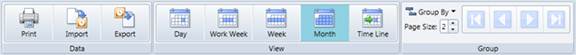 The remaining properties control which toolbar groups (Data,View,Group) are visible in the calendar.